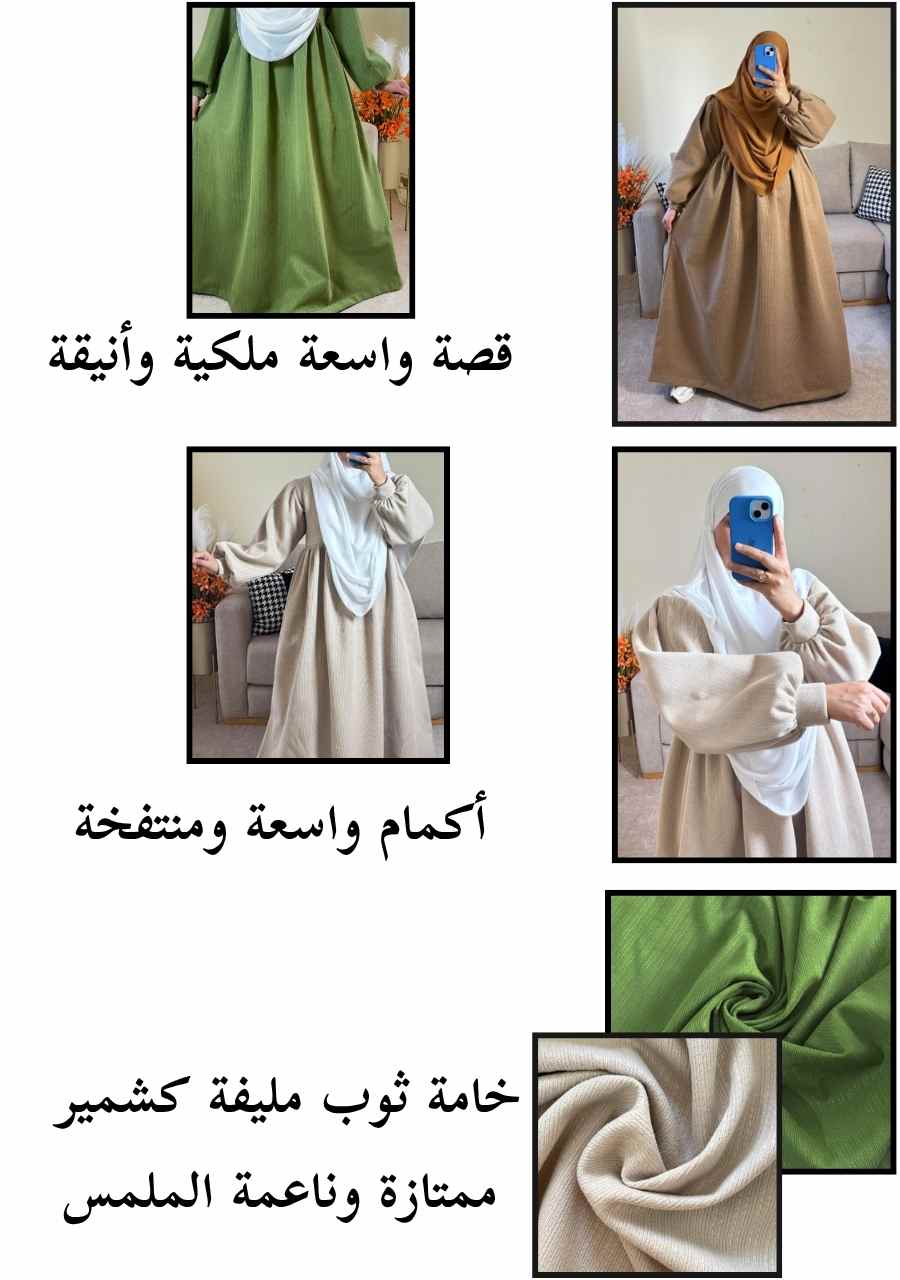 تألّقي بإطلالة تجمع بين الراحة والفخامة مع فستان ملك المصنوع من ثوب مليفة كشمير الفاخرة وناعمة الملمس، ليمنحك دفئًا وأناقة تناسب فصل الخريف والشتاء .